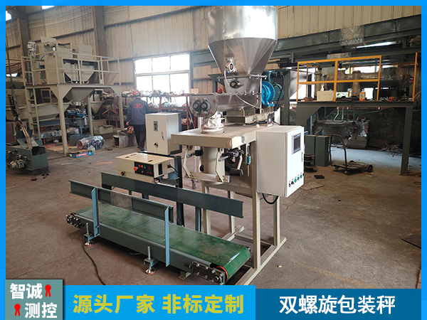 双螺旋包装秤是针对粉状、流动性较差的物料设计的自动定量包装设备,采用双螺旋给料方式与落地型架构,通过重力无斗计量实现高精度包装。其核心特点如下: